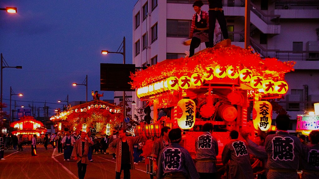 この今市屋台まつりは2度目の見学です。祭のいわれ、由緒等はわかりません。観光協会、ネットでいろいろを検索をしましたが、はっきりしたことがわかりません。21年に最初に見学したときは、日光への国道119号線の、まだ商店街のアーケードがあったころのものです。当時、国道119号線では、南北に道路の高低差があり、屋台を動かすことが、たいへんだったとおもわれます。そして日光見物に行く観光客をも巻き込む渋滞も一つの悩みだったのでしょう。でも今回はJR駅から東西の道路上でおこなわれましたので、重要道路を封鎖することなく円滑に行われたような気がします。21年の祭のときは、町内の方々の祭衣装が着流し風の裕福な商家の方々のようで、大尽様のお祭にもみえました。今回は、法被姿の威勢のいい若衆姿のいでたちが印象にのこりました。・・・とりあえず暫定の掲載 |